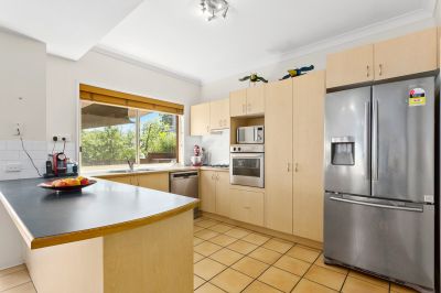 Hardwearing tiled flooring flows through to the superb open plan kitchen, meals and family room adorned with quality stainless steel appliances, Westinghouse dishwasher plus a breakfast bench.