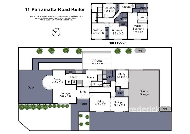 Venturing upstairs, you'll discover a cozy retreat, accompanied by four robed bedrooms, including the master suite with walk-in-robe and twin vanity ensuite, supplemented by a floor-to-ceiling tiled bathroom with toilet. Downstairs, large families will appreciate the inclusion of a study, additional bathroom with toilet and large laundry.